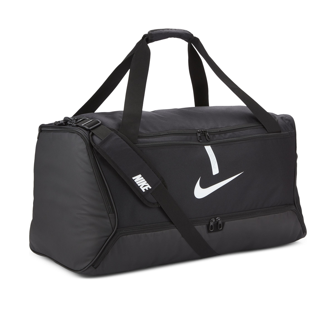 ساک ورزشی نایک مدل Nike Academy Team L Duffle رویه پلی استر سبک و بادوام محفظه اصلی زیپ دار با جیب زیپ داخلی محفظه زیپ جانبی با دسترسی آسان دسته های بالایی دوتایی بند شانه جداشونده و قابل تنظیم