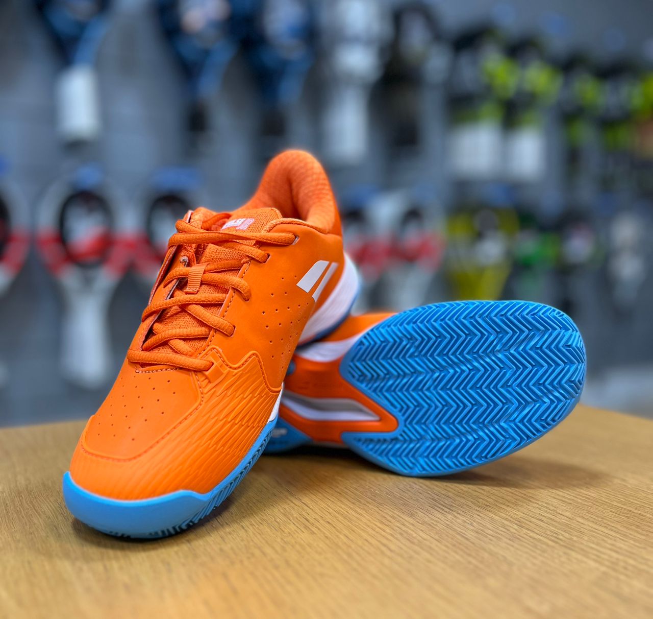 کفش زمین خاک تنیس بچگانه بابولات Propulse Junior 3 نارنجی ابی