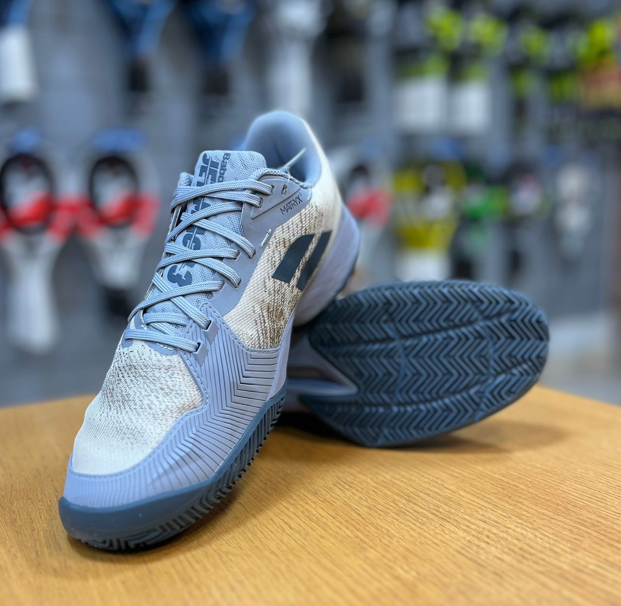 کفش زمین خاک تنیس بابولات مردانه jet mach 3 سفید طوسی